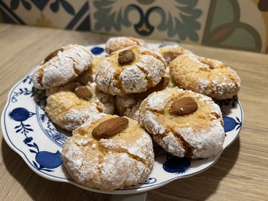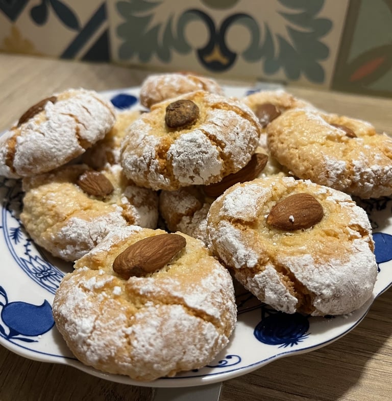 Petit gâteaux Italien à base de blancs d'œuf, poudre d'amande, sucre poudre et amandes