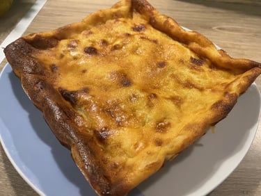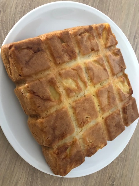 Gâteau très moelleux composé de pommes, farine, beurre, œufs, sucre, une touche de caramel beurre salé.