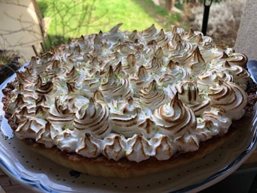 Pâte brisée sucrée maison, crémeux citron, meringue italienne légèrement flambée.
