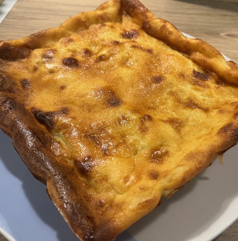 Far aux pruneaux d'Agen, préparé avec de la farine, des œufs, du lait, du sucre, du beurre, des pruneaux d'Agen et une touche de rhum.